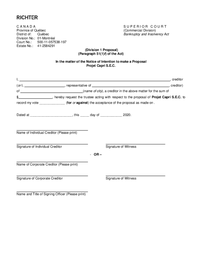 Get the free Notice of Application for Discharge of TrusteeRichter.ca