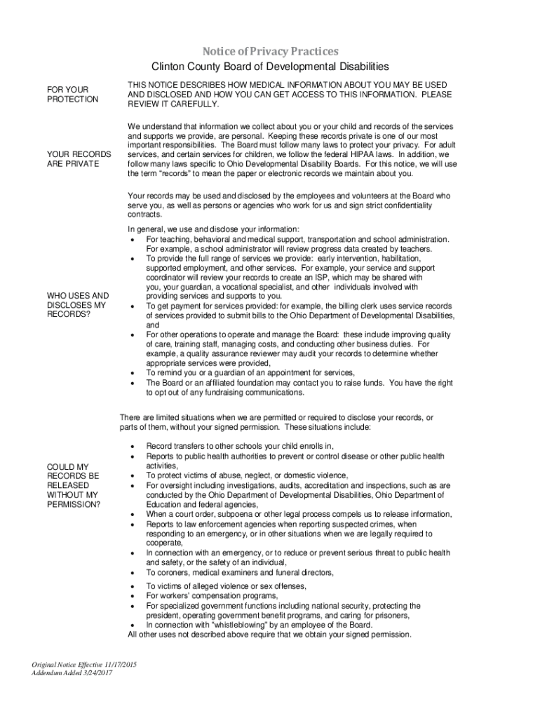 Get the free Notice of Privacy Practices - Clinton County Health Department - co clinton oh