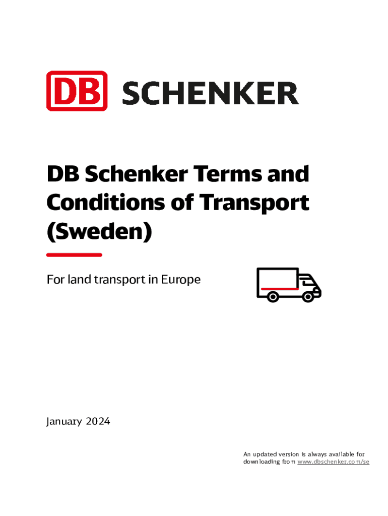 DB Schenker Terms and Conditions of Transport (Sweden) For land transport in EuropeJanuary 2024 An updated version is always available for downloading from www.dbschenker.com/seContents CHAPTER AGeneral