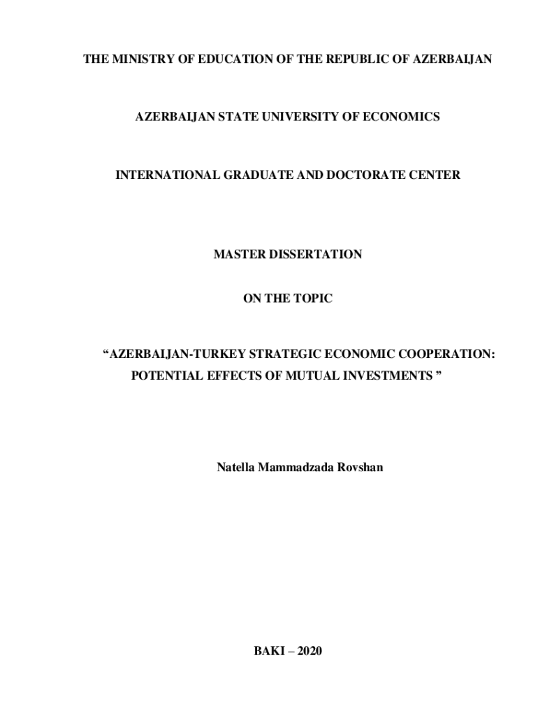 THE MINISTRY OF EDUCATION OF THE REPUBLIC OF AZERBAIJANAZERBAIJAN STATE UNIVERSITY OF ECONOMICSINTERNATIONAL GRADUATE AND DOCTORATE CENTERMASTER DISSERTATIONON THE TOPICAZERBAIJANTURKEY STRATEGIC