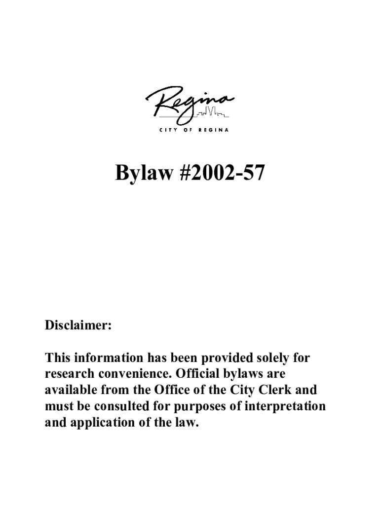 Fill out your bylaw 2002-57 - regina online with pdfFiller!