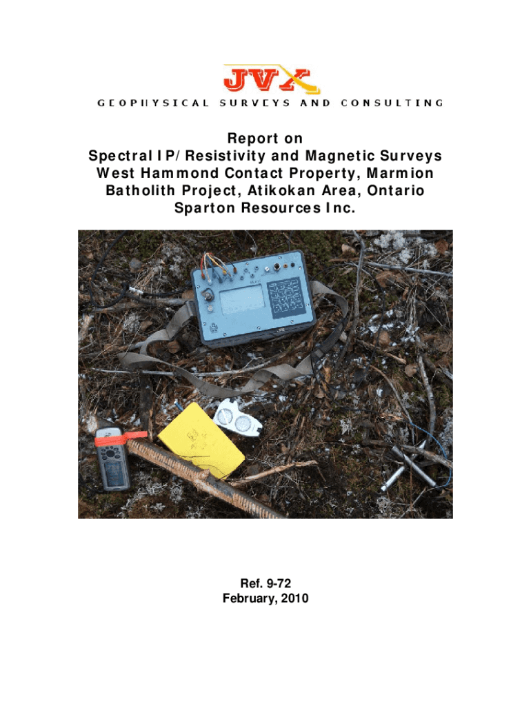 Report on Spectral IP/Resistivity and Magnetic Surveys West Hammond Contact Property, Marmion Batholith Project, Atikokan Area, Ontario Sparton Resources Inc.Ref. 972 February, 2010Report on Spectral