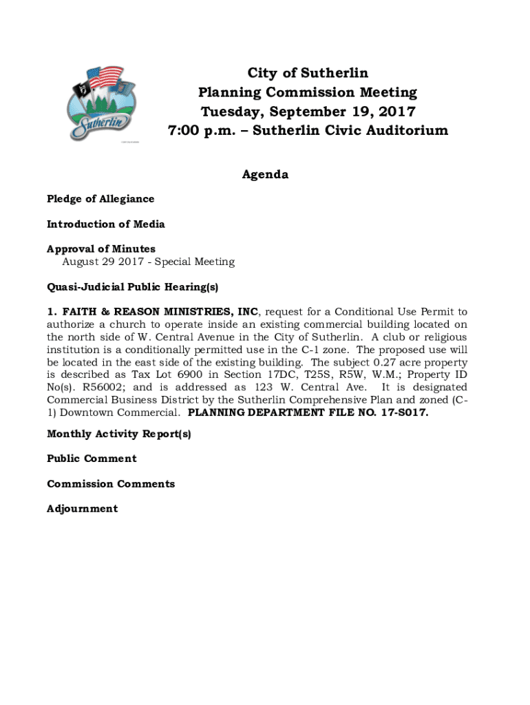 Get the free FAITH & REASON MINISTRIES, INC, request for a Conditional Use Permit to