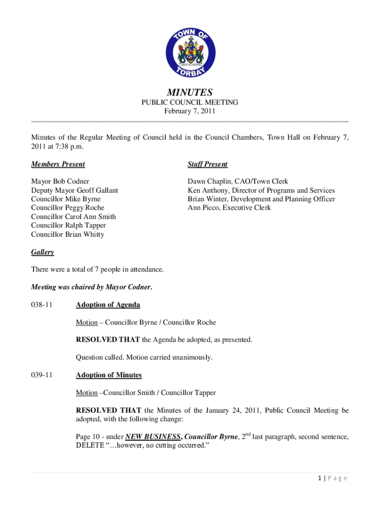 February 7, 2011Minutes of the Regular Meeting of Council held in the Council Chambers, Town Hall on February 7,