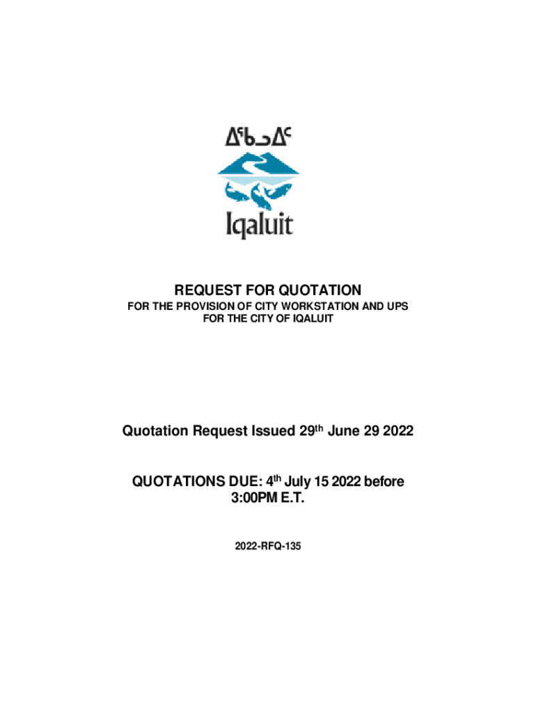 REQUEST FOR QUOTATION FOR THE PROVISION OF CITY WORKSTATION AND UPS FOR THE CITY OF IQALUITQuotation Request Issued 29th June 29 2022QUOTATIONS DUE: 4th July 15 2022 before 3:00PM E.T.2022RFQ135CITY