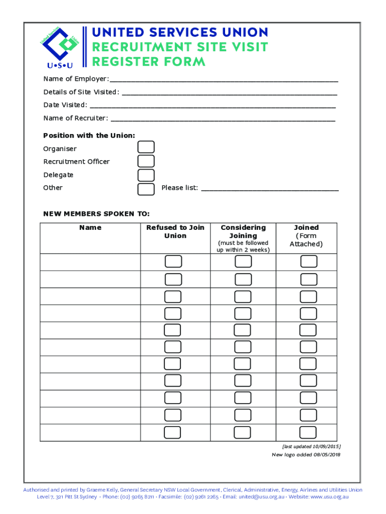 Fill out your recruitment site visit register online with pdfFiller!