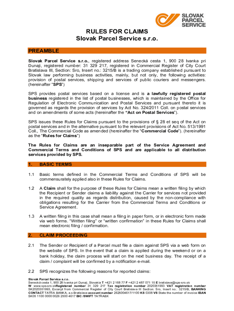 Get the free RULES FOR CLAIMS Slovak Parcel Service s.r.o.