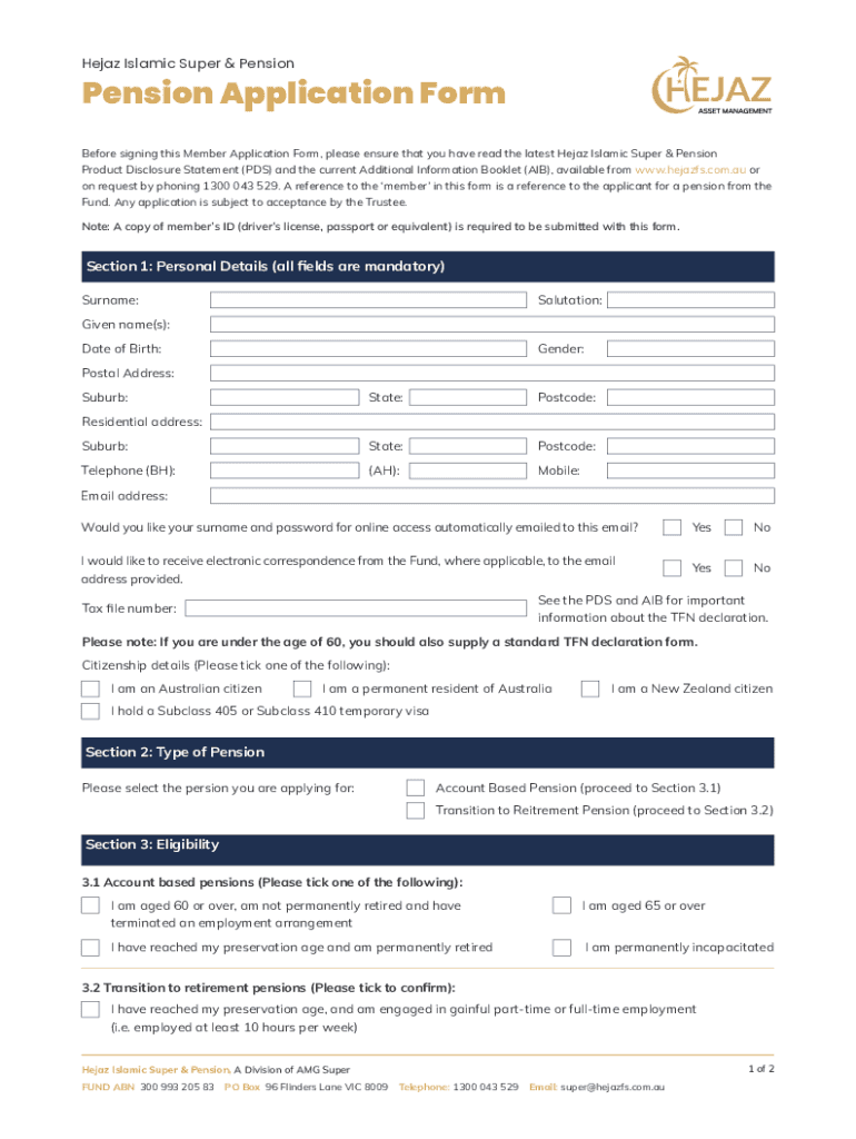 Head Islamic Super & PensionEJAZPension Application Forbore signing this Member Application Form, please ensure that you have read the latest Head Islamic Super & Pension
