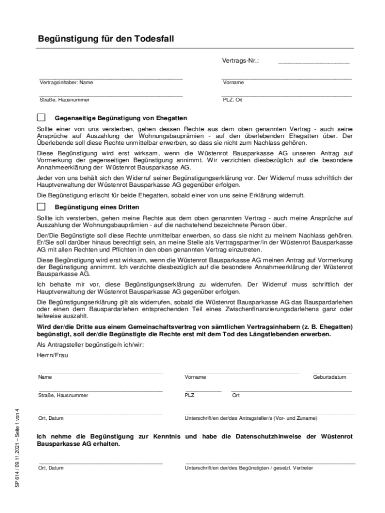 Holen Sie sich kostenlos SP 614-pc Begnstigung auf den Todesfall. SP 614-pc Begnstigung auf den T...