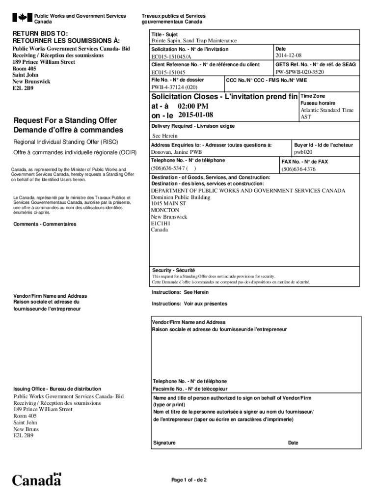 Public Works and Government Services CanadaTravaux publics et Services gouvernementaux Canada 1 1RETURN BIDS TO: RETOURNER LES SOUMISSIONS :Title SujetPublic Works Government Services Canada Bid Receiving