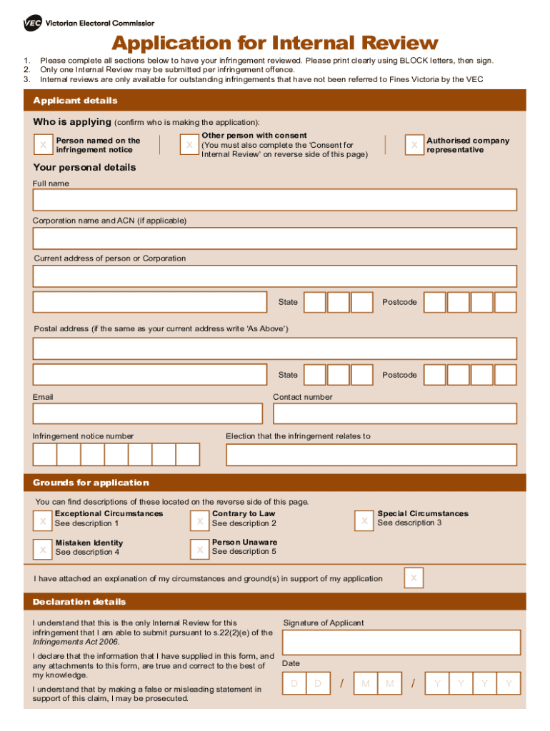 Application for Internal Review1.Please complete all sections below to have your infringement reviewed. Please print clearly using BLOCK letters, then sign. 2.Only one Internal Review may be submitted