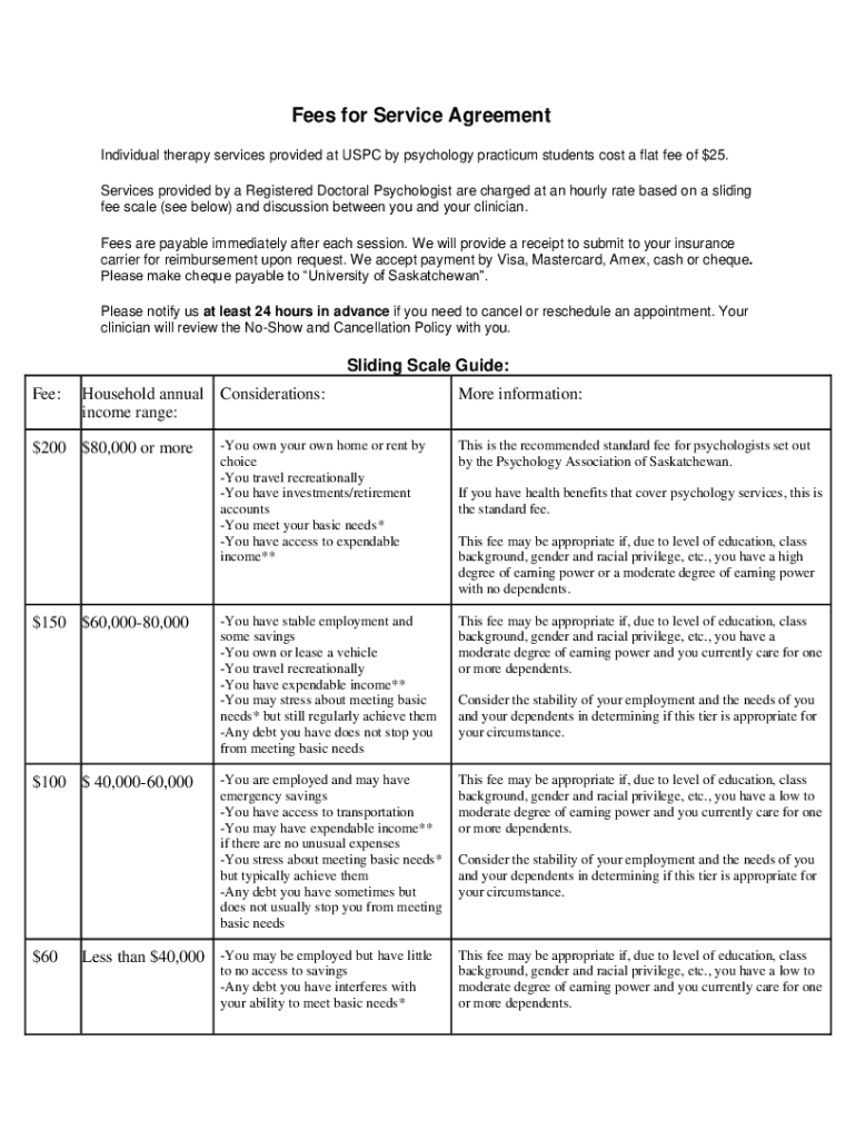 Review the fees for service agreement carefully to ensure accuracy and clarity.