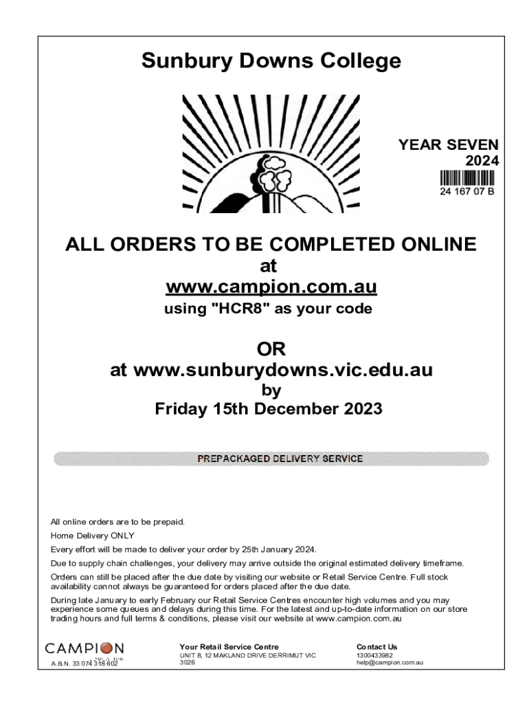Filling out the Sunbury Downs College year typically involves following guidelines provided by the college, which may include filling out forms related to enrollment, course selection, and performance reporting.