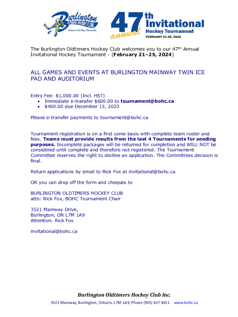 Invitational Hockey Tournament (February 2125, 2024)ALL GAMES AND EVENTS AT BURLINGTON MAINLY TWIN ICE