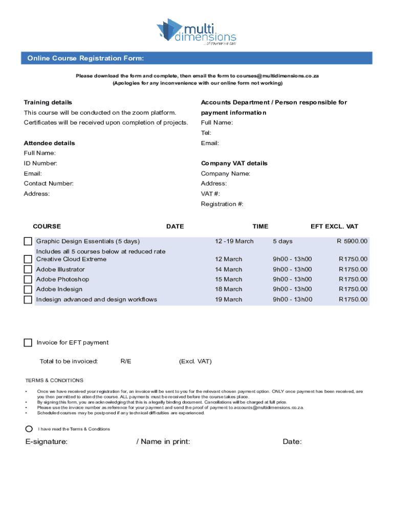 Please download the form and complete, then email the form to courses@multidimensions.co.za
