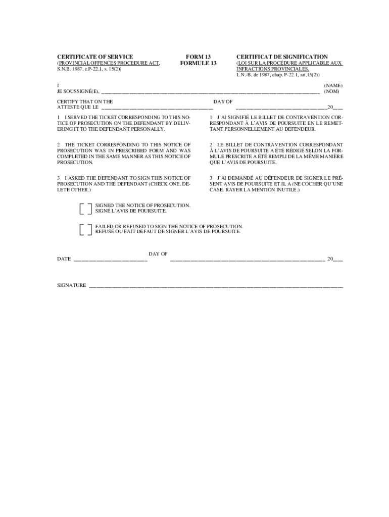 Obtenir le gratuit form 13 formule 13 certificat de signification