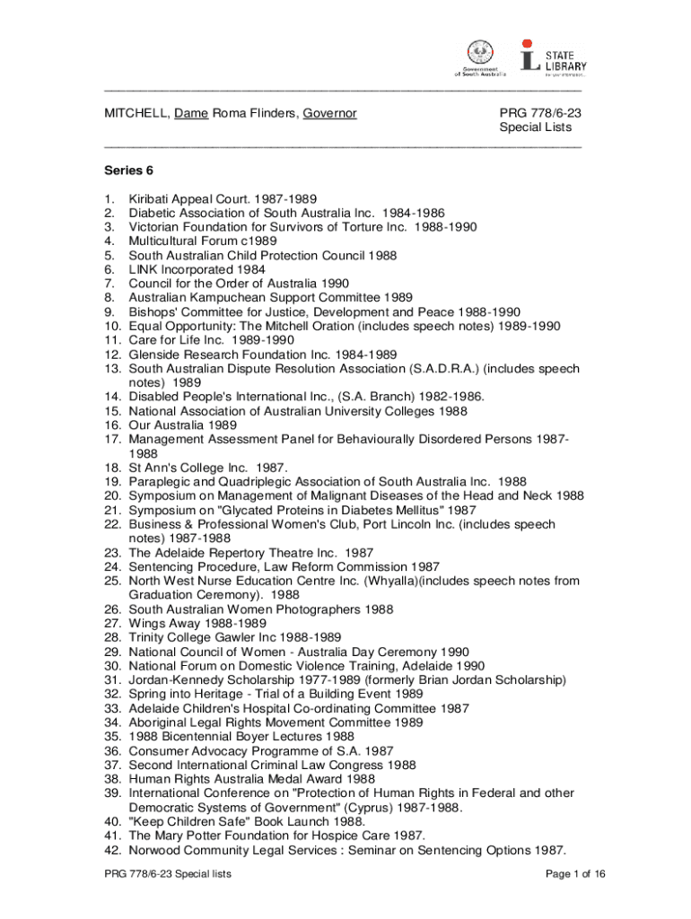 MITCHELL, Dame Roma Flinders, Governor PRG 778/623