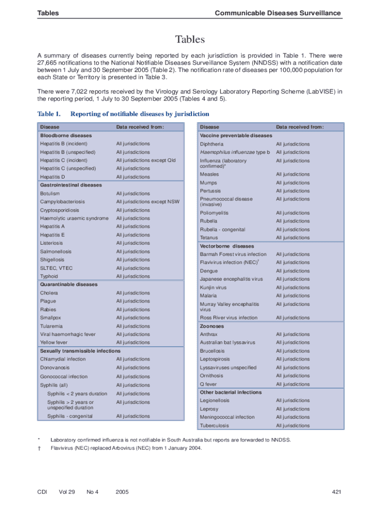 TablesCommunicable Diseases SurveillanceTables