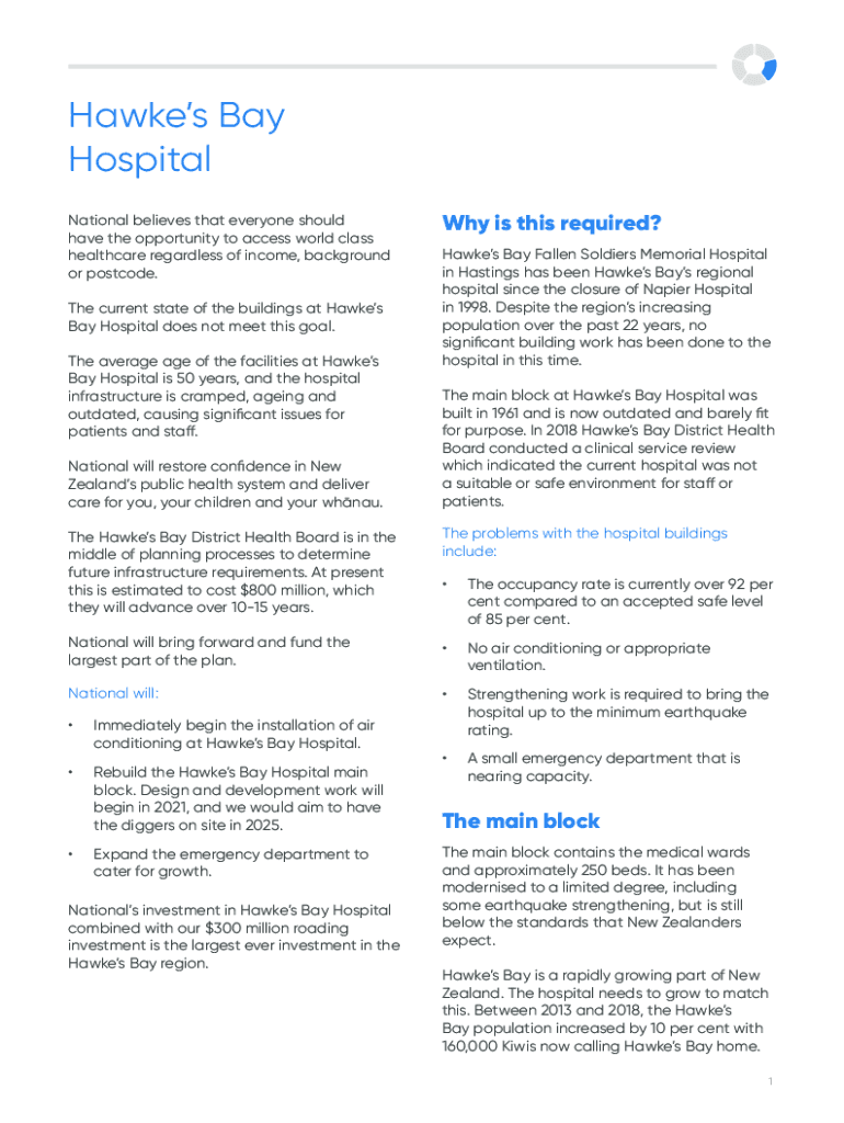 Hawkes Bay Hospital National believes that everyone should have the opportunity to access world class healthcare regardless of income, background or postcode. The current state of the buildings at