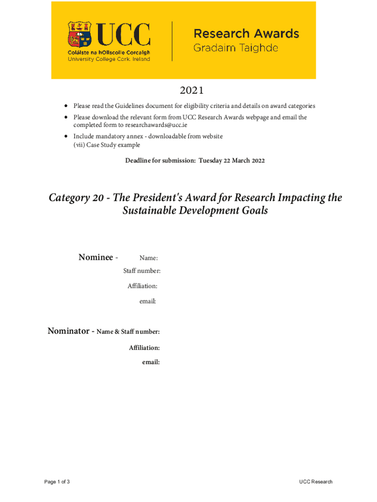 Get the free UCC Research Awards - NOMINATION FORMVersion 2.0