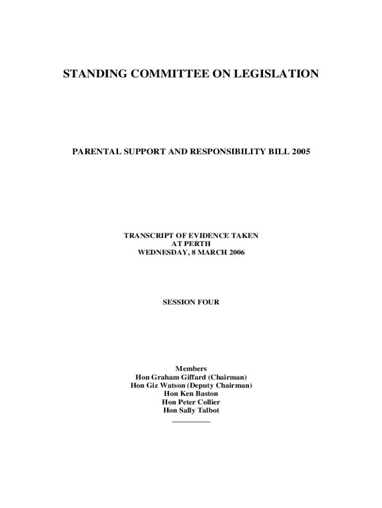 STANDING COMMITTEE ON LEGISLATIONPARENTAL SUPPORT AND RESPONSIBILITY BILL 2005TRANSCRIPT OF EVIDENCE TAKEN