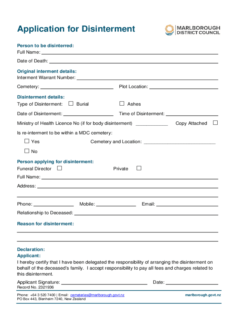 Typically, the legal next of kin or the individual responsible for the deceased person’s estate is required to file final disposition options.