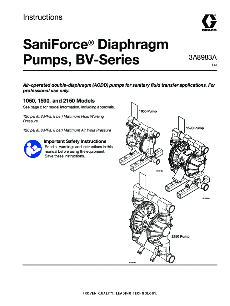 Get the free 3A8983A, Manual, SaniForce Diaphragm Pumps, BV-Series, Instructions, English. Air-op...
