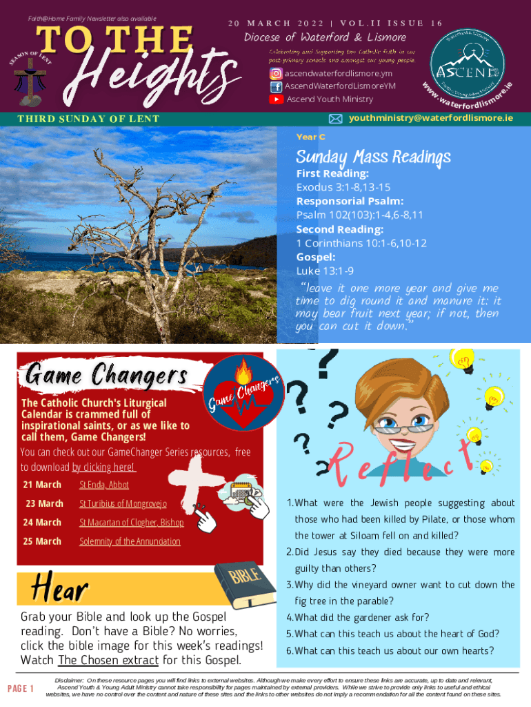 RHear efl ct TO THE20 MARCH 2022 | VOL.II ISSUE 16Diocese of Waterford & LismoreON OF LE ASNTAscend Youth MinistryTHIRD SUNDAY OF LENTwwAscendWaterfordLismoreYMw.wateieascendwaterfordlismore.ymore.SEFaith@Home