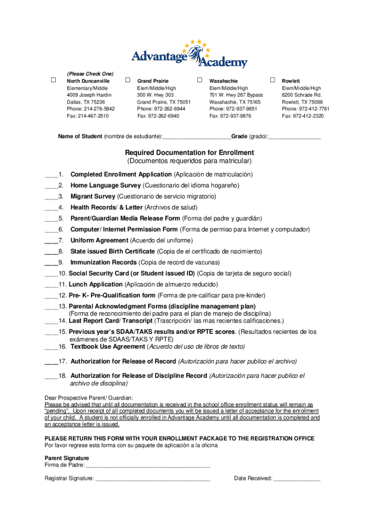 (Please Check One) North Duncanville Elementary/Middle 4009 Joseph Hardin Dallas, TX 75236 Phone: 2142765842 Fax: 2144672510Grand Prairie Elem/Middle/High 300 W. Hwy 303 Grand Prairie, TX 75051 Phone: