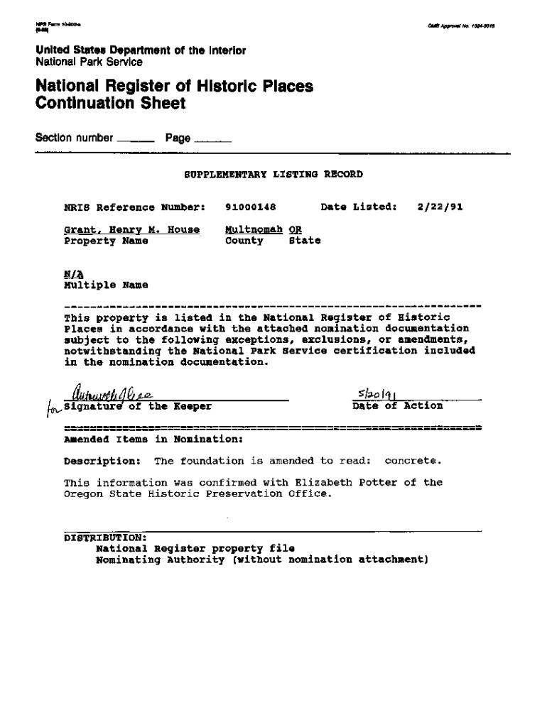 Get the free National Register of Historic Places Continuation Sheet - SHPO