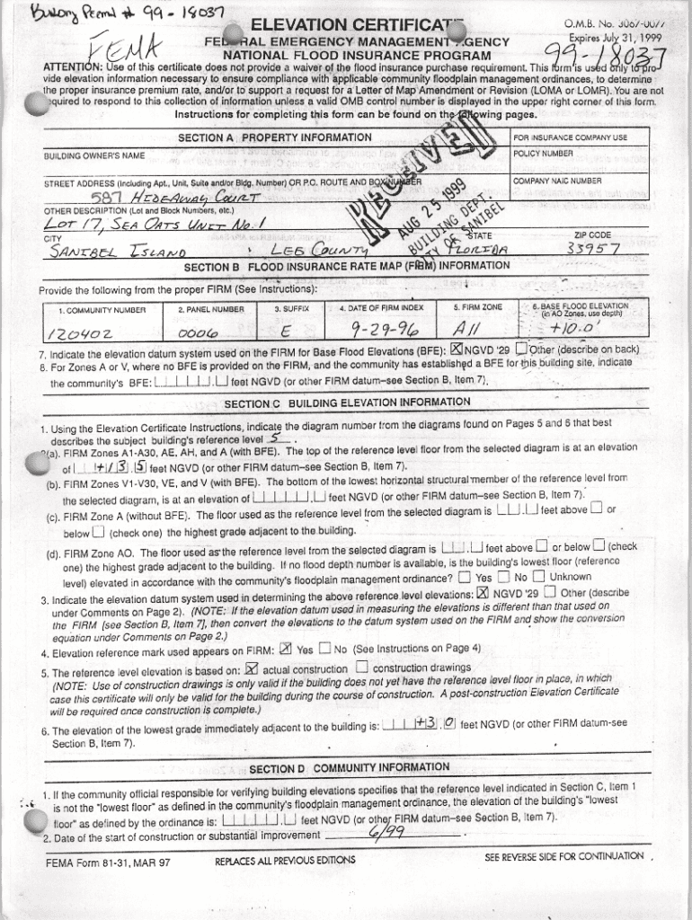 ELEVATION CERTIFICATATTENTIe1/FErnRALA,l/`EMERGENCYNATIONALN: Use of this certificate doesnot provideFLOODa waiver ofO. M. B. No. : t0a/MANAGEMEN1INSURANCEExpiresGENCY