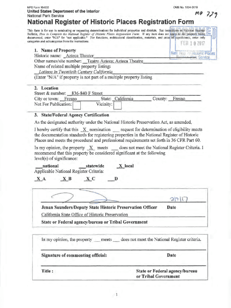 0MB No. 10240018NPS Form 10900MpUnited States Department of the Interior National Park ServiceNational Register of Historic Places Registration Form This form is for use in nominating or requesting