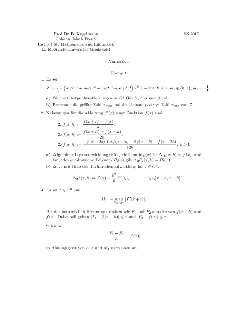 Prof. Dr. B. Kugelmann Johann Jakob Preu Institut fr Mathematik und Informatik E.M.ArndtUniversitt GreifswaldSS 2017Numerik I bung 1 1. Es sei noZ : m1 21 + m2 22 + m3 23 + m4 24 2E | 2 E 2, mi 0,