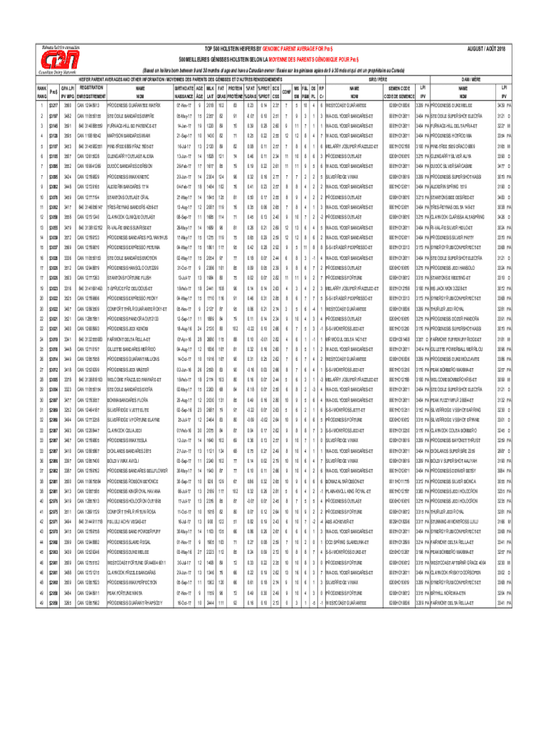 TOP 500 HOLSTEIN HEIFERS BY GENOMIC PARENT AVERAGE FOR Pro$AUGUST / AOT 2018500 MILLERS GLASSES HOLSTEIN SALON LA DOYENNE DES PARENTS UNIQUE POUR Pro