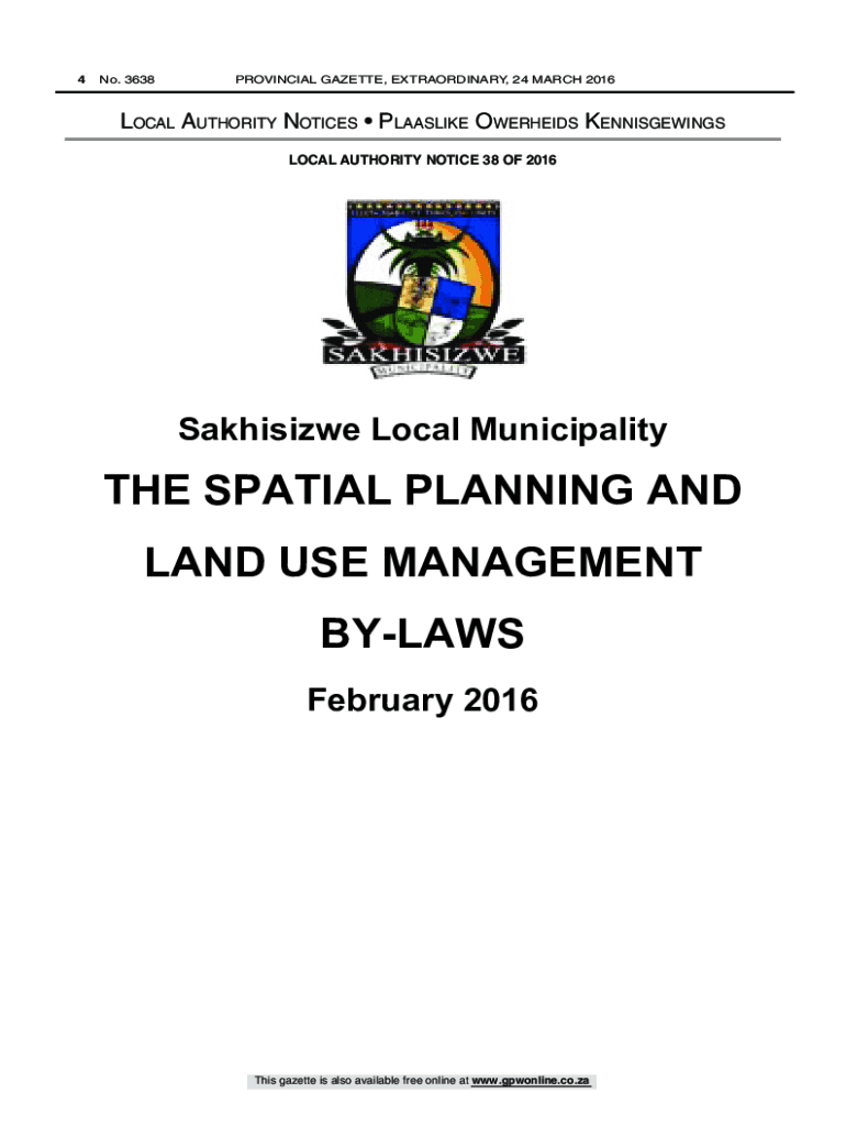 4 No. 3638PROVINCIAL GAZETTE, EXTRAORDINARY, 24 MARCH 2016Local Authority Notices Plaaslike Owerheids Kennisgewings LOCAL AUTHORITY NOTICE 38 OF 2016 38The Spatial Planning and Land Use Management