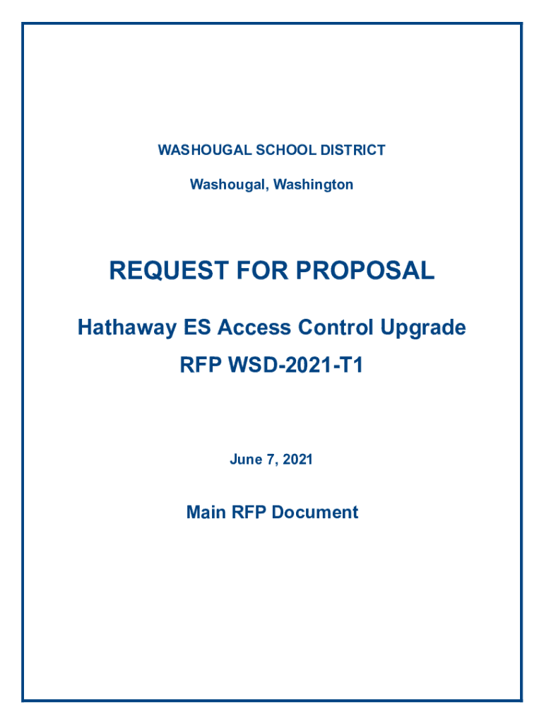 WASHOUGAL SCHOOL DISTRICT Washougal, WashingtonREQUEST FOR PROPOSAL Hathaway ES Access Control Upgrade RFP WSD2021T1June 7, 2021Main RFP DocumentHathaway ES Access Control UpgradeWashougal School