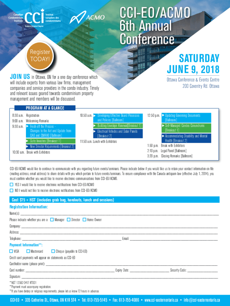 CCIEO/ACMO 6th Annual ConferenceEastern Ontario ChaptertRegister TODAY!SATURDAY JUNE 9, 2018JOIN US in Ottawa, ON for a one day conference whichOttawa Conference & Events Centre 200 Coventry Rd. Ottawawill