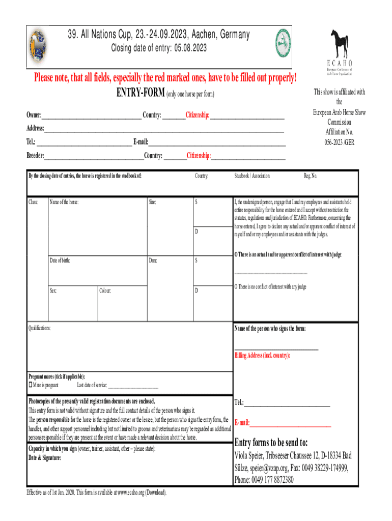 To fill out the 39th All Nations Cup forms, participants must provide details about their athletes, including names, nationalities, event categories, and any relevant statistical data, following the specific guidelines provided by the event organizers.