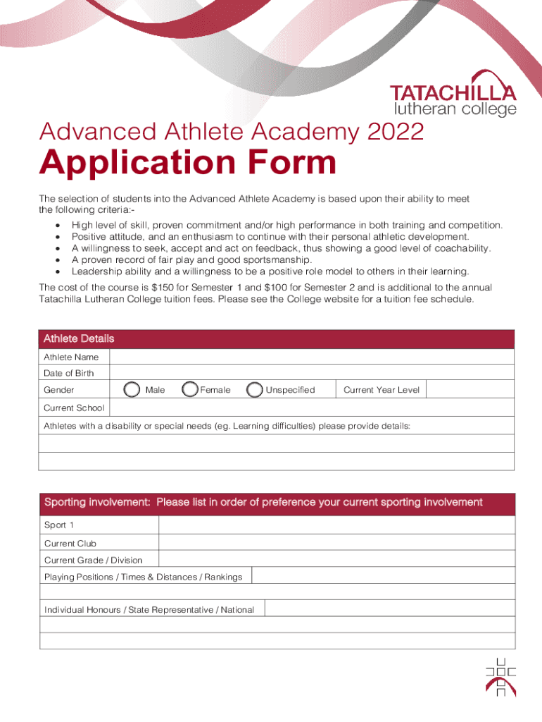 Advanced Athlete Academy 2022Application Forth selection of students into the Advanced Athlete Academy is based upon their ability to meet