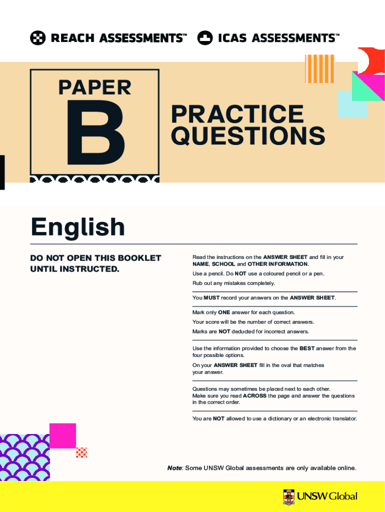 PAPERBPRACTICE QUESTIONSEnglish DO NOT OPEN THIS BOOKLET UNTIL INSTRUCTED.Read the instructions on the ANSWER SHEET and fill in your NAME, SCHOOL and OTHER INFORMATION. Use a pencil. Do NOT use a