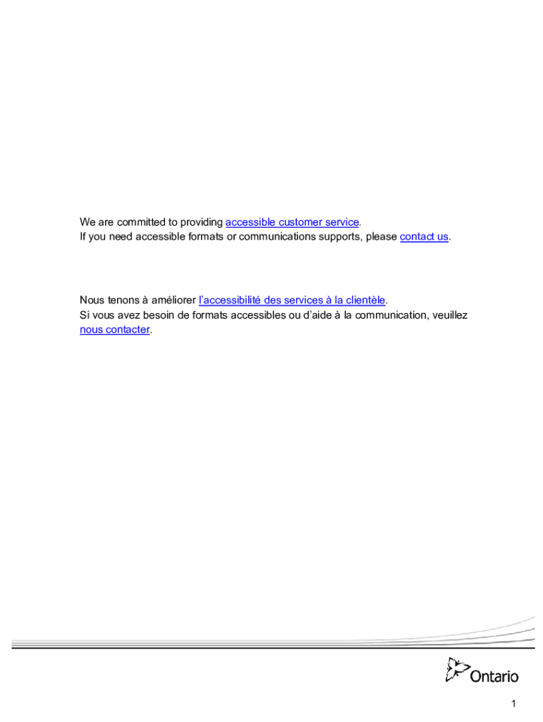 We are committed to providing accessible customer service. If you need accessible formats or communications supports, please contact us.Nous tenons amliorer laccessibilit des services la clientle.