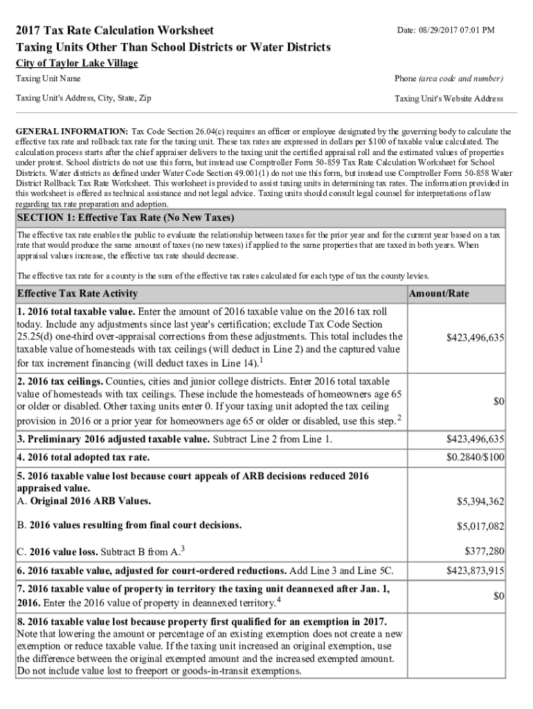 2017 Tax Rate Calculation Worksheet