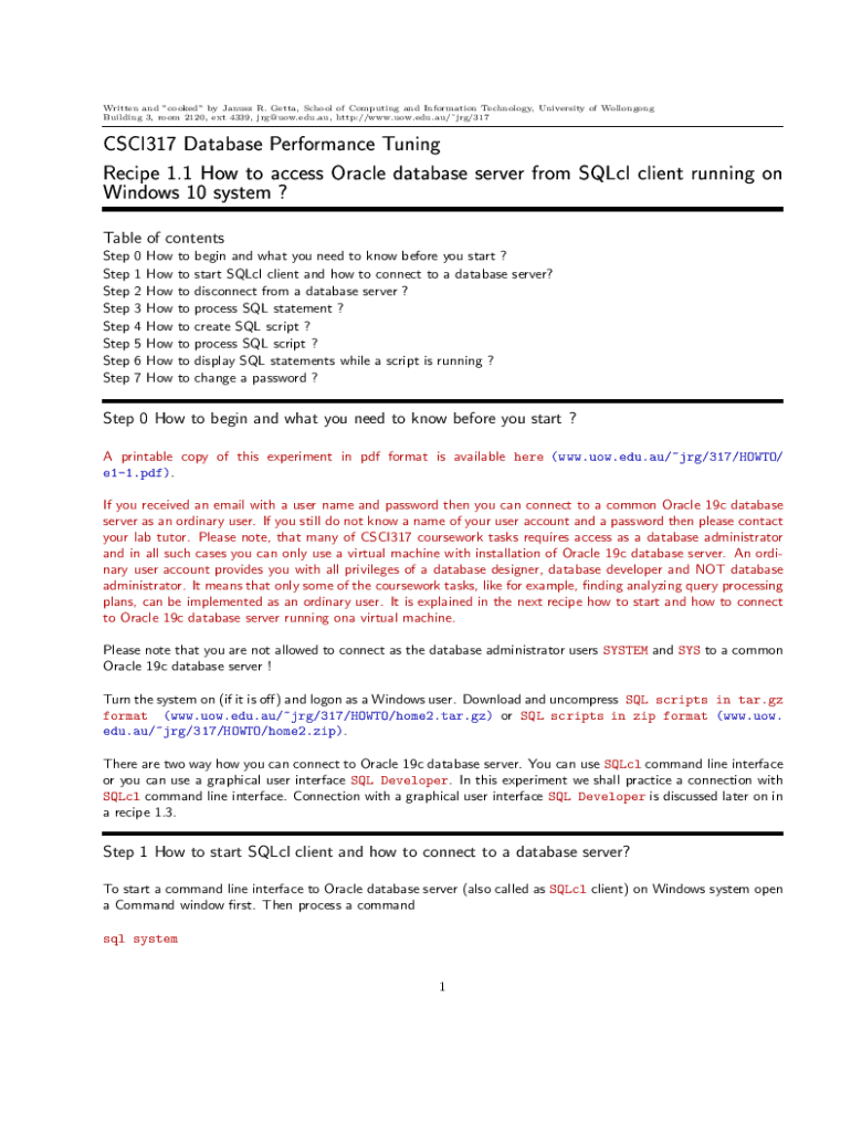 Written and cooked by Janusz R. Getty, School of Computing and Information Technology, University of Wollongong