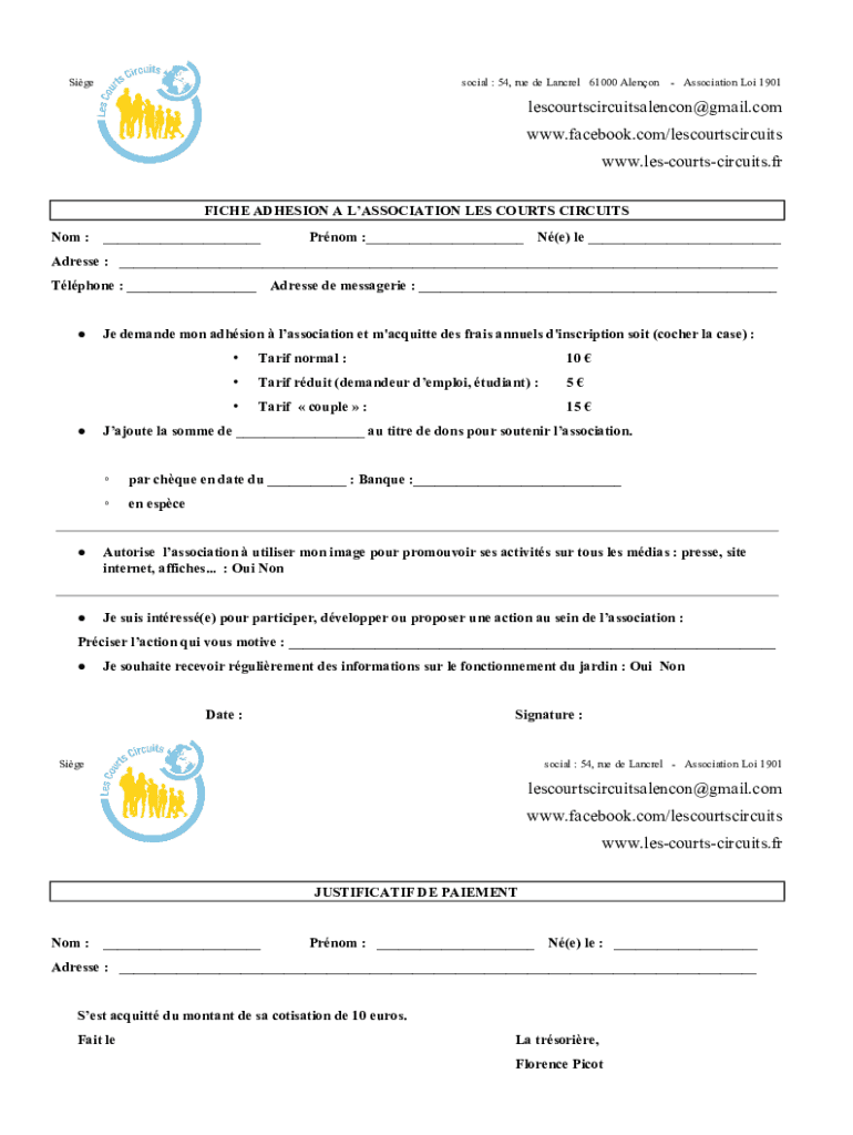 Obtenir le gratuit fiche adhesion a l'association les courts circuits