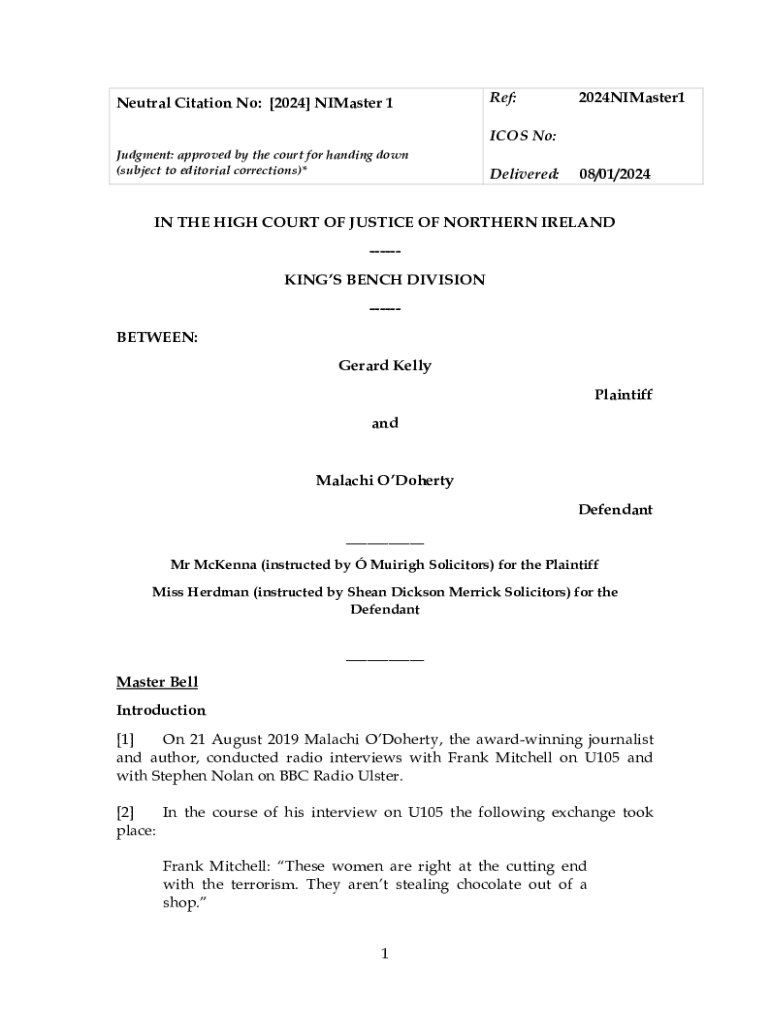 Neutral Citation No: [2024] NI Master 1Ref:2024NIMaster1ICOS No:
