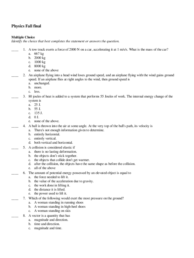 Physics Fall final