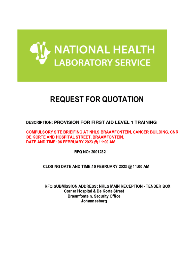 COMPULSORY SITE BRIEFING AT NHS BLOEMFONTEIN, CANCER BUILDING, CNR
