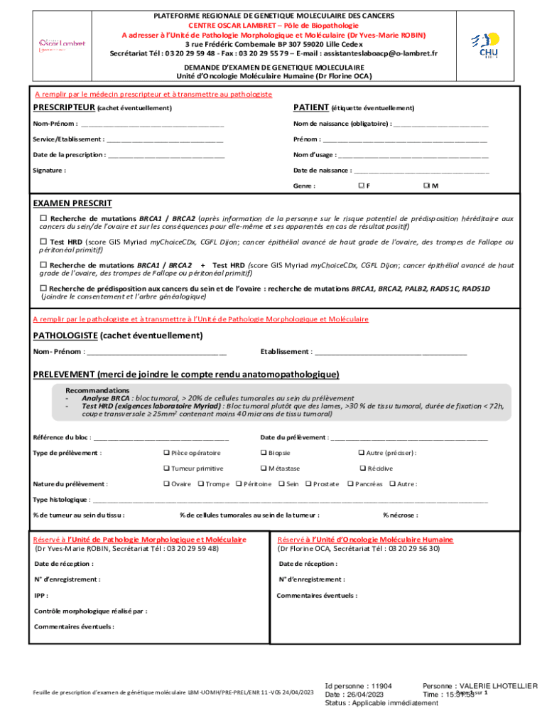 PLATFORM REGIONAL DE GENETIC MOLECULAR DES CANCERS