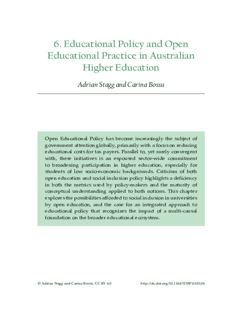 Adrian Stage and Carina BossuOpen Educational Policy has become increasingly the subject of