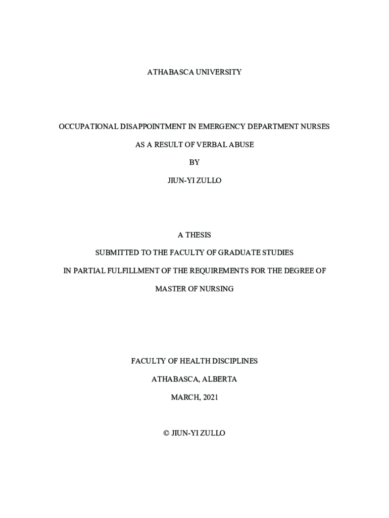 Get the free Occupational Disappointment in Emergency Department ... - dt athabascau